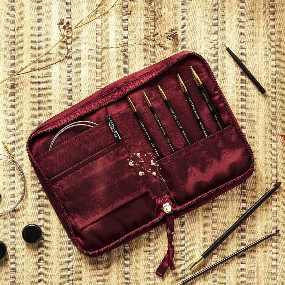 La custodia è realizzata con seta Khadi, un materiale indiano storicamente significativo. L'esterno presenta graziosi ricami a motivi floreali. All'interno c'è spazio per più uncinetti tunisini e cordoncini. La custodia con cerniera mantiene tutti i contenuti conservati e organizzati in modo sicuro. Questo set all'uncinetto è stato progettato da artigiani per essere utilizzato da generazioni da abili magliaie.